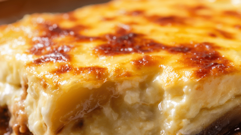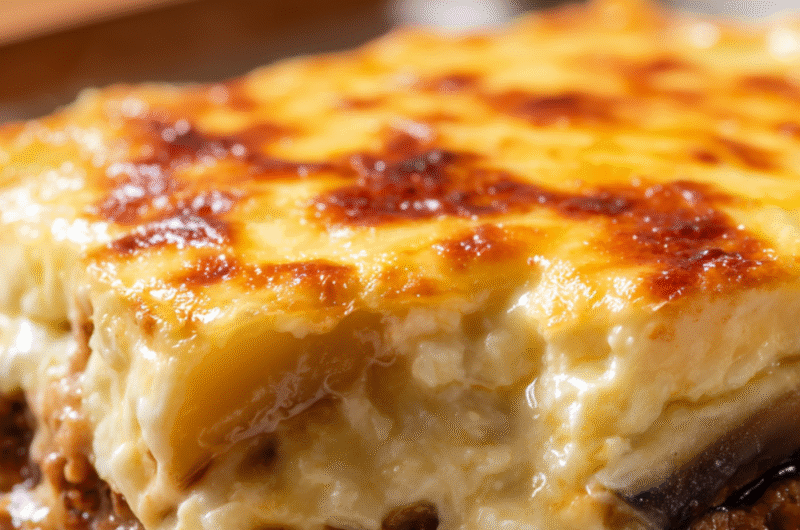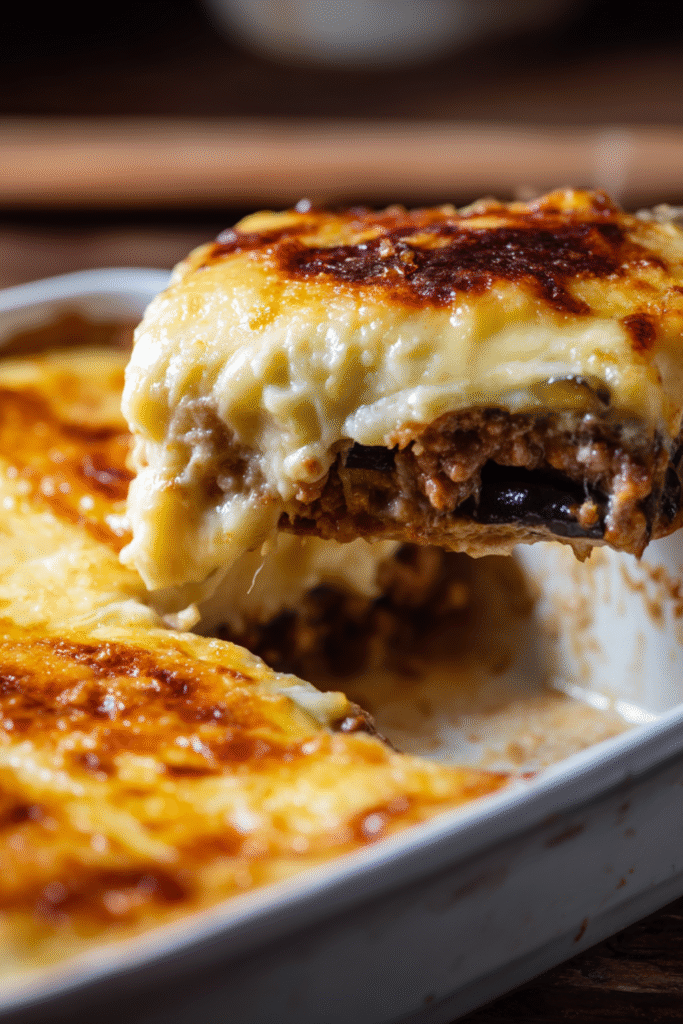 - Why is it important to rest the béchamel? Letting the béchamel sauce cool slightly off the heat for a few minutes before pouring it over the moussaka allows it to stabilize and thicken, which helps create a perfect, distinct top layer.
